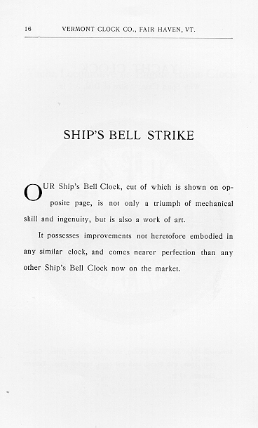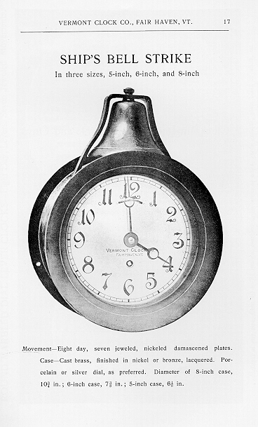 clock manufacture in the city of Boston Clock Company of Maine After the failure of the Eastman Clock Company in 1896, Harry W. Bates, formed the Boston Clock Company of Maine using Eastman's factory and clock designs. His use of this famous name has led to much confusion as to the origin of the Chelsea Clock Company. The Boston Clock Company of Maine, 1896-1897, was a completely different company from the original Boston Clock Company, 1884-1894. The Boston Clock Company of Maine produced a limited number of marine and regulator clocks in 1897 that were ultimately sold as products of the infant Chelsea Clock Company. The rediscovery in 1997, of clock #204, has shed new light on the transition period between the Boston Clock Company of Maine and the beginning of the Chelsea Clock Company. In the November 11, 1896 issue of the Jeweler's Circular and Horological Review (JC&HR), the following was recorded. "H. W. Bates, president of the newly organized Boston Clock Co., is pleased with the changed outlook, and considers conditions favorable for the start they are to make next week at the plant formerly occupied by the Eastman Clock Co., in Chelsea. Mr. Bates says that they will have a New York office and probably a Chicago office also. The Boston business will be handled from the factory, on account of its nearness to the city." Signatures on Early Chelsea Clocks Until clock #204 surfaced, it has been the accepted wisdom that the Boston Clock Company of Maine probably never produced anything in the way of a clock. The 4.5" marine clock, #204, is the missing link between the Boston Clock Co. of Maine and the Chelsea Clock Co. and shows that the Boston Clock Co. of Maine did indeed produce a small number of clocks, in the seven short months that the company existed. Clock #204 movement is identical in design to similar products of the Chelsea Clock Co. in all respects, except the finish of the plates. The plates of this clock are marked "Boston Clock Co." and "204". Review of the first Movement Record Book of the Chelsea Clock Co. shows that the first marine clock production was started with clock #200. Further examination shows that in the beginning, Chelsea Clock Co. was toying with the idea of numbering each type of clock with its' own serial number series. The record shows that a series of clocks numbered 1-660 were also produced that were of the Number One pendulum type. This numbering method was quickly discarded and hereafter clocks were numbered in numerical order regardless of the movement type. The entry for clock #204 shows that the clock was sold to "Chas. C. Hutchinson", "Boston" on September 13, 1897. No mention of the movement being marked "Boston Clock Co." is made for entry #204, however, the entry for clock #209 is recorded as being sold to "Chas. C. Hutchinson" and is recorded as "Boston Clock Co. Mvt" sold, also on September 13, 1897. Careful review of the entire Movement Record Book One does not show any other reference to the Boston Clock Co., except this one brief entry. The near pristine original condition of clock #204 marked "Chas. C. Hutchinson" and the record book evidence, clearly show that this clock is indeed the clock referred to as entry number 204. This evidence shows that the Boston Clock Co. of Maine, at least, started manufacture of a limited number of clocks. Whether the Boston Clock Co. of Maine or the Chelsea Clock Co. actually finished these clocks is debatable, but there is no question that some early clocks sold as the products of the infant Chelsea Clock Co. were marked Boston Clock Co. To date, only clock #204 and two other clocks have been found to be so marked. Several early marine, carriage, and pendulum regulator clocks marked "Chelsea Clock Co." that have been signed over a milled circular area are known to exist. These clocks are material that was produced by the Boston Clock Company of Maine, but unlike clock #204 and the two clocks mentioned, were remarked before they were sold by the Chelsea Clock Company. Other serial numbers known to be marked in this manner are marine types #208, #218, #263 and #310. The earliest known marine type signed "Chelsea Clock Co.", that is not milled, is #341. All known pendulum regulators in the series 1-660 are marked "Chelsea Clock Co". Serial numbers 5, 95, 158, and 267 in this series are known to be milled and remarked Chelsea Clock Co. In addition to Harry Bates' interest in the Boston Clock Co. of Maine, he contracted to purchase stock in the Standard Cordage Company of Boston, manufacturer of rope and twine, from Charles H. Pearson. The relationship between Bates and Pearson was to form the basis for the beginning of the Chelsea Clock Co. This is the point that Joseph Eastman and the company that was to become the Chelsea Clock Company diverge. At the time Harry Bates was due to pay for the stock he had purchased from Charles Pearson, he found himself short of cash. Charles H. Pearson took control of the Boston Clock Company of Maine as payment for the stock Bates had purchased from him. The horological trail of Joseph Eastman was to forever leave Chelsea, Mass., in the year 1896. Although, Eastman's clock designs and factory marked the physical and technical beginnings of the Chelsea Clock Company, it was the business talent of Charles H. Pearson that was the sustaining energy of the company. Fairhaven Manufacturing and Vermont Clock Companies After the failure of the Eastman Clock Company, Joseph Eastman, joined with Busby Bell and Tool Company of Fairhaven, Vermont in 1896 to form the Fairhaven Manufacturing Company. Fairhaven Manufacturing Company became the Vermont Clock Company in 1898, also in Fairhaven. Clocks were produced in Fairhaven with movements from the original Boston Clock Company and the Eastman Clock Company in addition to Fairhaven MFG Co. and Vermont Clock Company movements. Although the Vermont Clock Company catalog of 1900 offered a wide variety of clocks, only about 3000 total i